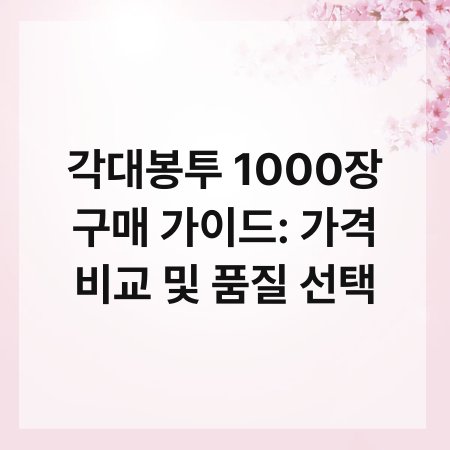 온라인에서 각대봉투를 1000장 구매하려고 하신다면, 가격과 품질을 비교하는 것이 필수적입니다. 여러 브랜드와 제품이 있어 선택이 쉽지 않을 수 있습니다. 이 글에서는 각대봉투 구매 가이드를 통해 가격 비교와 품질 선택의 중요성을 안내드립니다. 올바른 선택을 통해 비용을 절감하고 만족스러운 결과를 얻을 수 있도록 도와드릴게요. 함께 알아보시죠!