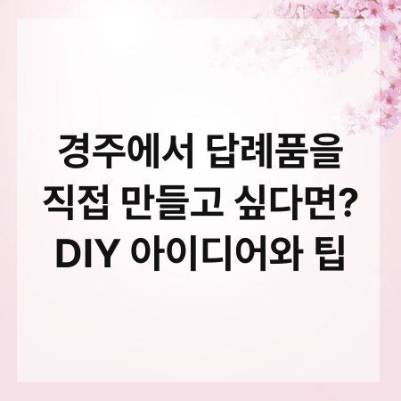 DIY 답례품은 여러분의 정성과 창의력을 담아 특별한 선물을 만드는 과정입니다. 경주에서의 추억을 담은 답례품을 만들어 보세요. 여러분의 손으로 만든 선물은 받는 사람에게 큰 감동을 줄 것입니다. 지금 바로 아이디어를 정리하고, 필요한 재료를 준비해 보세요!