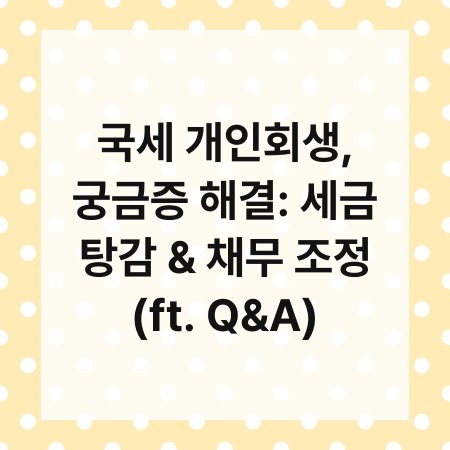 ✅ 국세 개인회생은 세금 탕감과 채무 조정의 방법입니다.