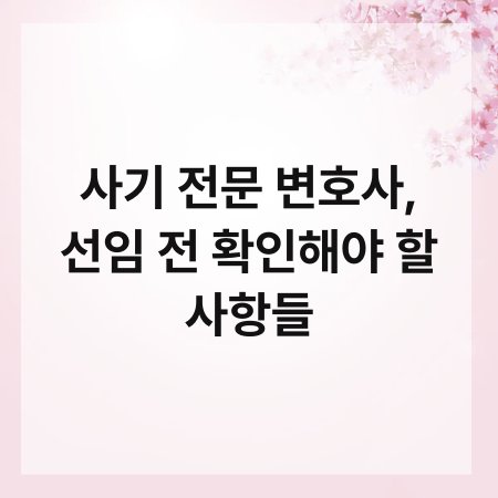 또한, 해당 변호사가 어떤 분야의 사기를 전문으로 하는지도 체크해보세요. 가령, 금융 사기, 인터넷 사기 등 특정 분야에 특화된 변호사가 더 효과적일 수 있습니다.