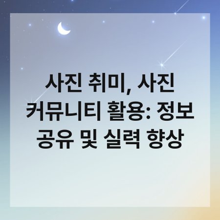 지금 바로 사진 취미를 즐기고, 커뮤니티에서 소통하며 실력을 한층 더 높여보세요. 새로운 경험이 여러분을 기다리고 있습니다!