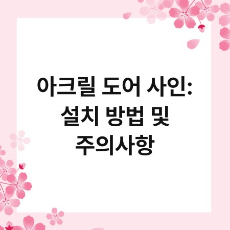 지금까지 아크릴 도어 사인의 설치 방법과 주의사항에 대해 알아보았습니다. 이 정보를 바탕으로 멋진 사인을 설치해보세요. 지금이라도 하나씩 바꿔보는 건 어떨까요?