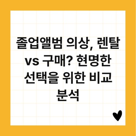 졸업앨범 의상, 여러분의 특별한 순간을 더욱 빛내주는 중요한 요소입니다. 하지만 이 의상을 렌탈할지 구매할지 고민하는 분들이 많습니다. 이 글에서는 렌탈과 구매의 장단점을 비교 분석해 보겠습니다. 어떤 선택이 더 현명할지 함께 알아보며, 여러분의 결정을 도와드리겠습니다. 졸업앨범 의상에 대한 고민이 많으셨다면, 끝까지 읽어보세요!