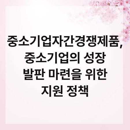 중소기업은 경제의 중요한 축을 담당하고 있습니다. 하지만 경쟁이 치열한 시장에서 살아남기란 쉽지 않죠. 중소기업자간경쟁제품은 이러한 기업들이 경쟁력을 갖추는 데 큰 도움이 됩니다. 정부는 중소기업의 성장을 지원하기 위한 다양한 정책을 마련하고 있습니다. 이 글에서는 중소기업자간경쟁제품과 이를 위한 지원 정책에 대해 자세히 알아보겠습니다.