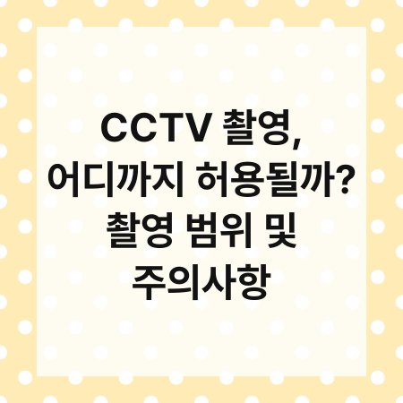 CCTV 촬영, 어디까지 허용될까요? 요즘 CCTV는 우리의 일상에서 필수적인 요소로 자리 잡고 있습니다. 하지만 CCTV 촬영이 어디까지 허용되는지, 촬영 범위와 주의사항에 대해 잘 알고 계신가요? 이 글에서는 CCTV의 법적 기준과 주의해야 할 점들을 알아보며, 안전하게 활용하는 방법을 안내해 드리겠습니다. 여러분의 궁금증을 해결해 드릴 테니 끝까지 함께해 주세요.